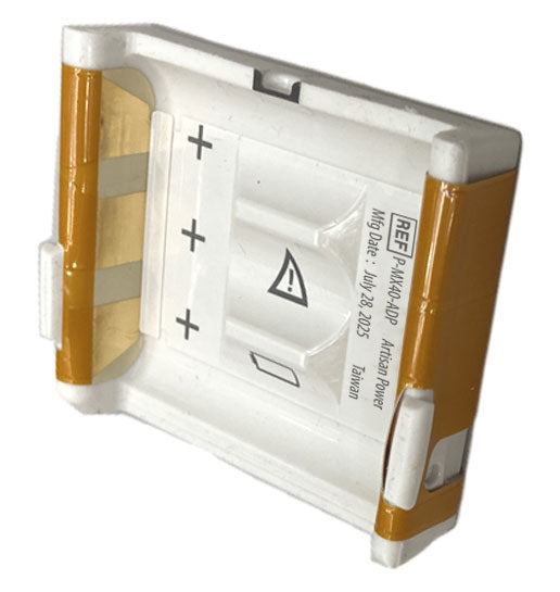 Adapter Pack for the Philips IntelliVue MX40 Patient wearable monitor. Three AA disposable alkaline batteries included. Fully replaces the OEM Adapter part number 989803174891.  The Adapter Pack fits into the IntelliVue MX40 just like the battery pack.