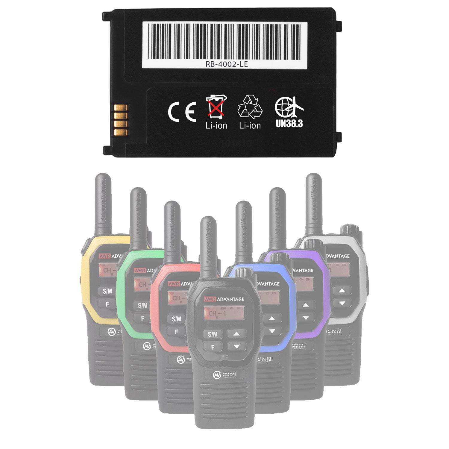 Replacement Extended Capacity battery for the Advanced Wireless AWR Advantage AWR-4000 and AWR-4002 Two Way Radios. Replaces OEM battery number AWB-4002.